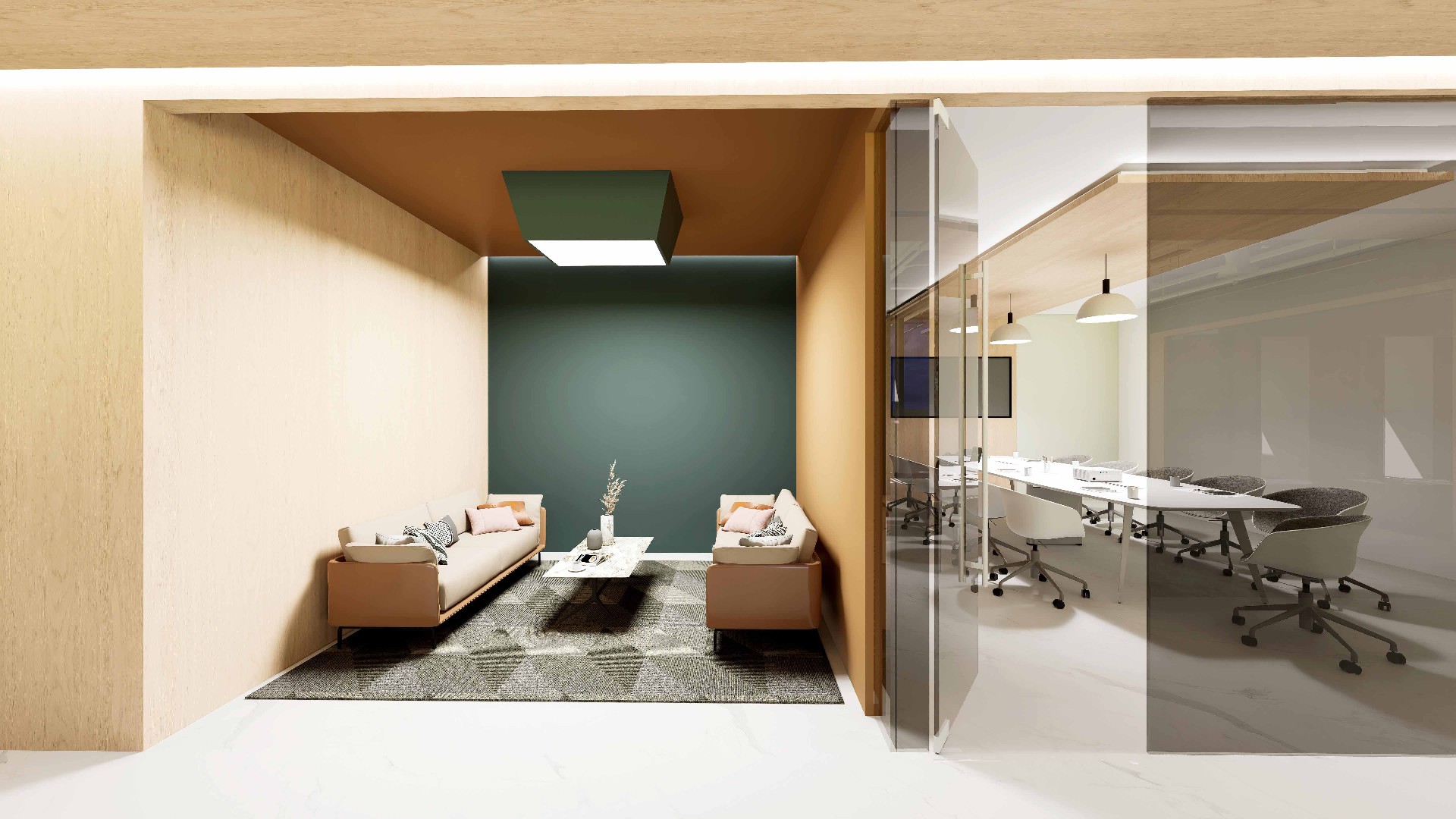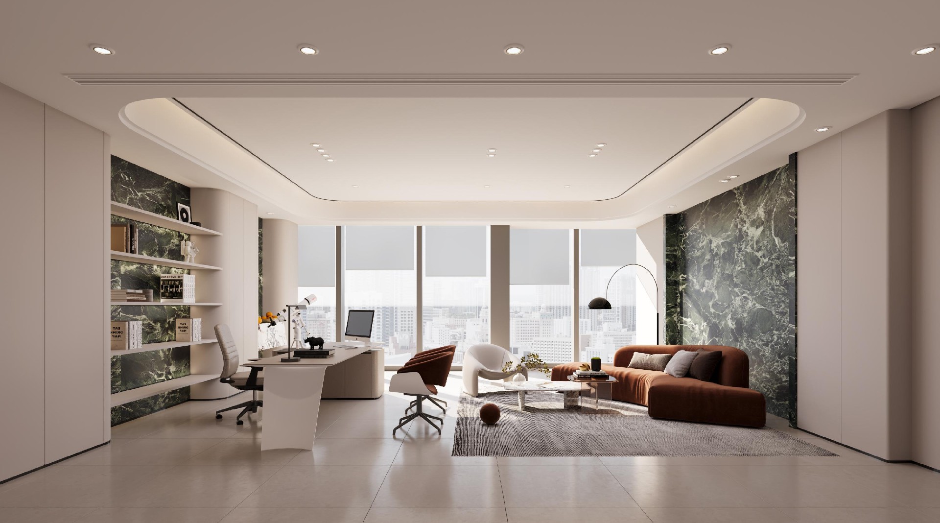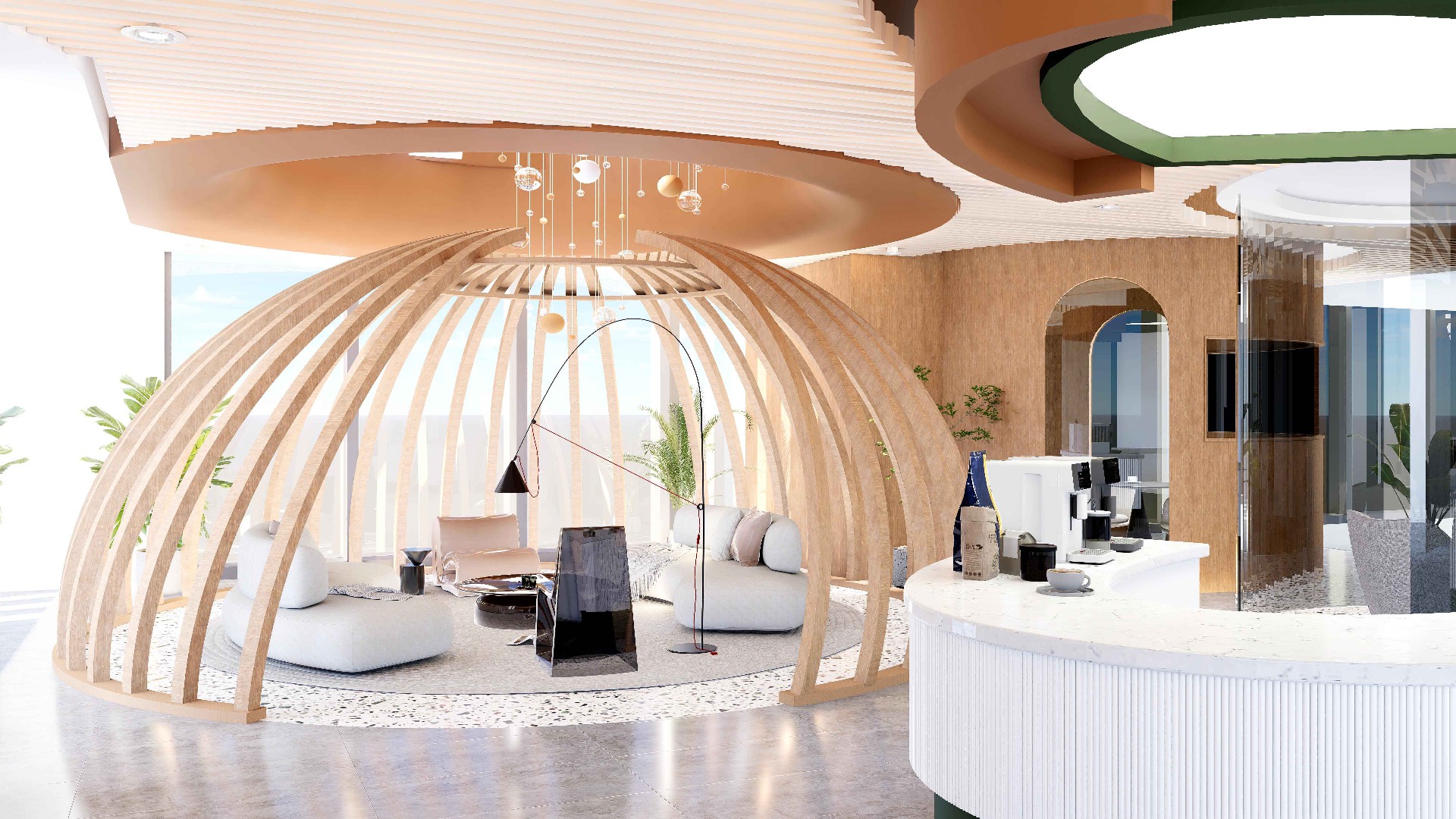 本办公空间设计以现代简约为基调,融入自然元素与温馨色彩。前台简洁大气,奠定专业基调。休闲区采用木质穹顶造型,搭配柔和灯光与舒适家具,营造放松氛围。会议室、茶室等功能区,通过合理布局与材质搭配,既保证功能性,又具美学感。开放办公区明亮开阔,利于协作。整体设计旨在打造一个舒适、高效且富有格调的办公环境,平衡工作与休闲,激发员工创造力与工作热情。