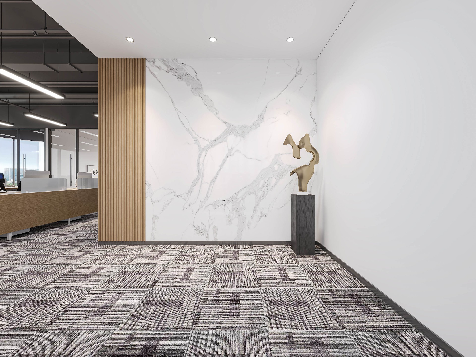 大理石形象墙搭配木格栅,第一眼便传递简约大气的企业气质;开放办公区以裸顶管道与线性灯打造工业质感,搭配浅木色工位与玻璃隔断,兼顾高效协作与通透采光;独立办公室则以温润木饰面与自然采光,营造沉稳舒适的商务氛围。整体以黑白灰为主调,融入木色柔化冷硬感,打造兼具高效体验与人文温度的现代化办公空间。