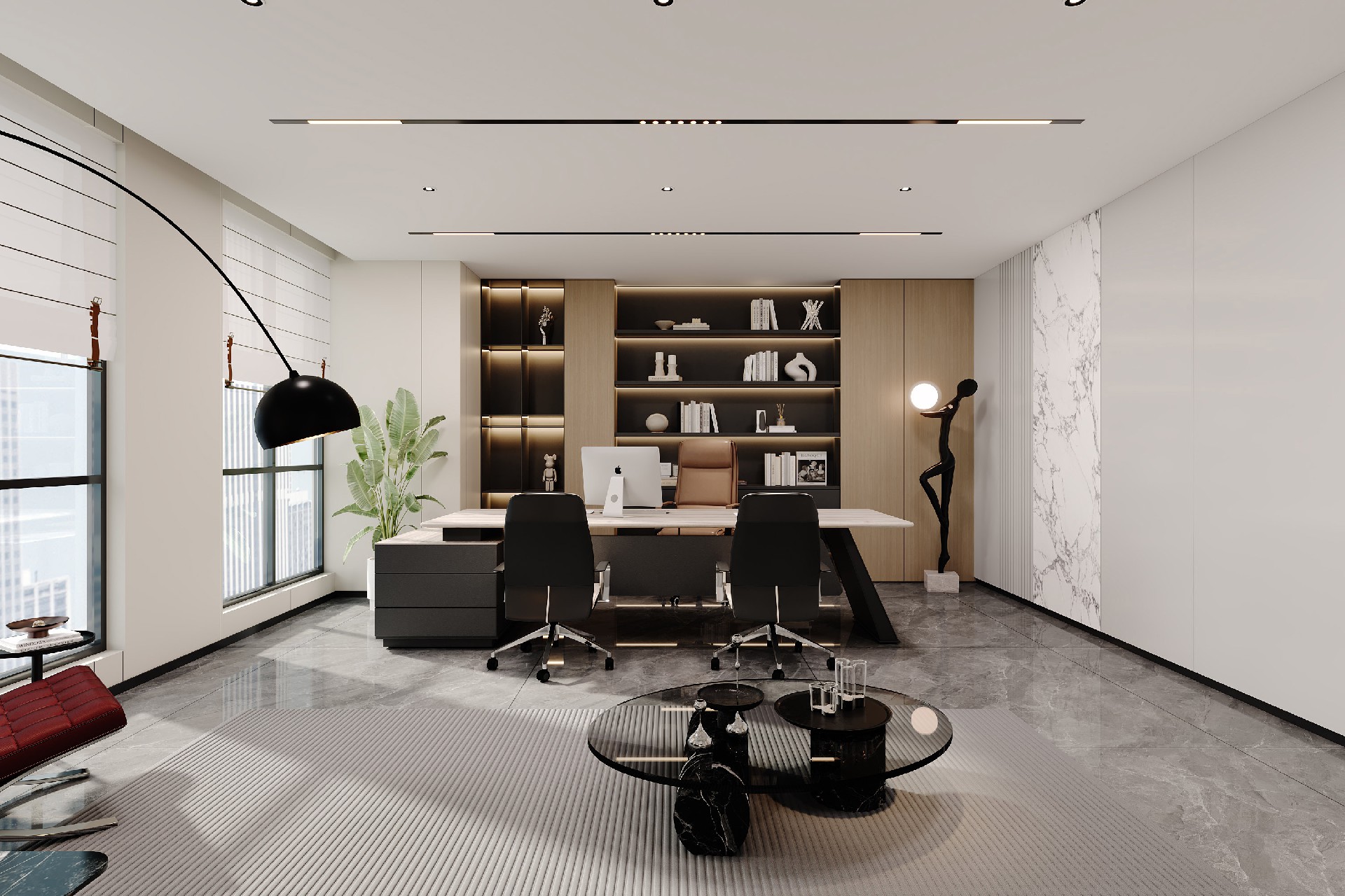 本项目采用现代极简风设计,以利落线条与科技质感,打造兼具商务气场与品牌辨识度的办公场域。