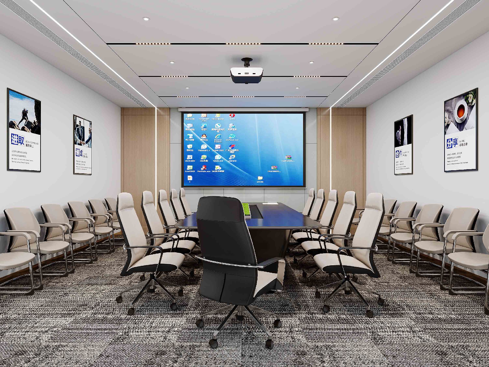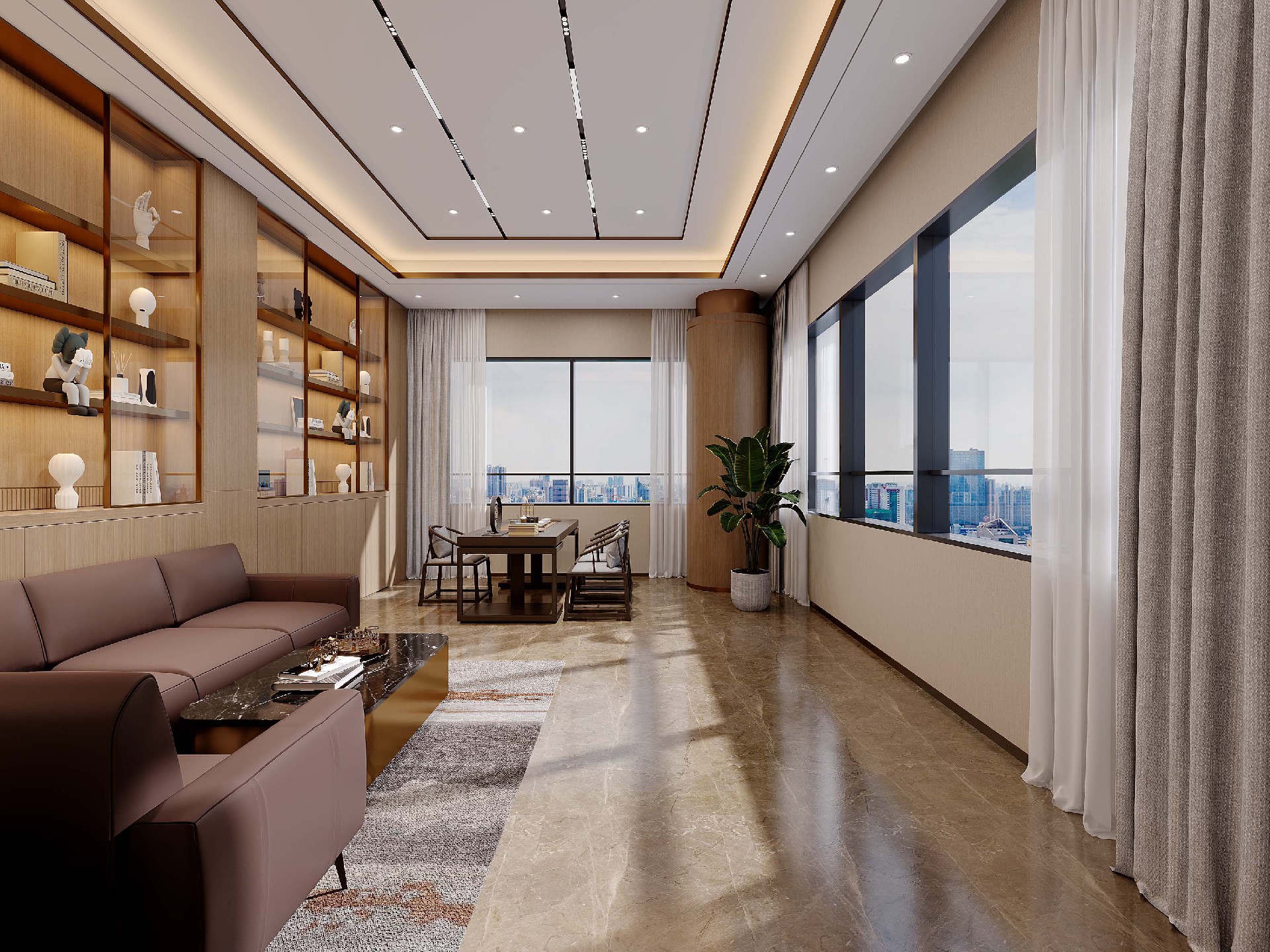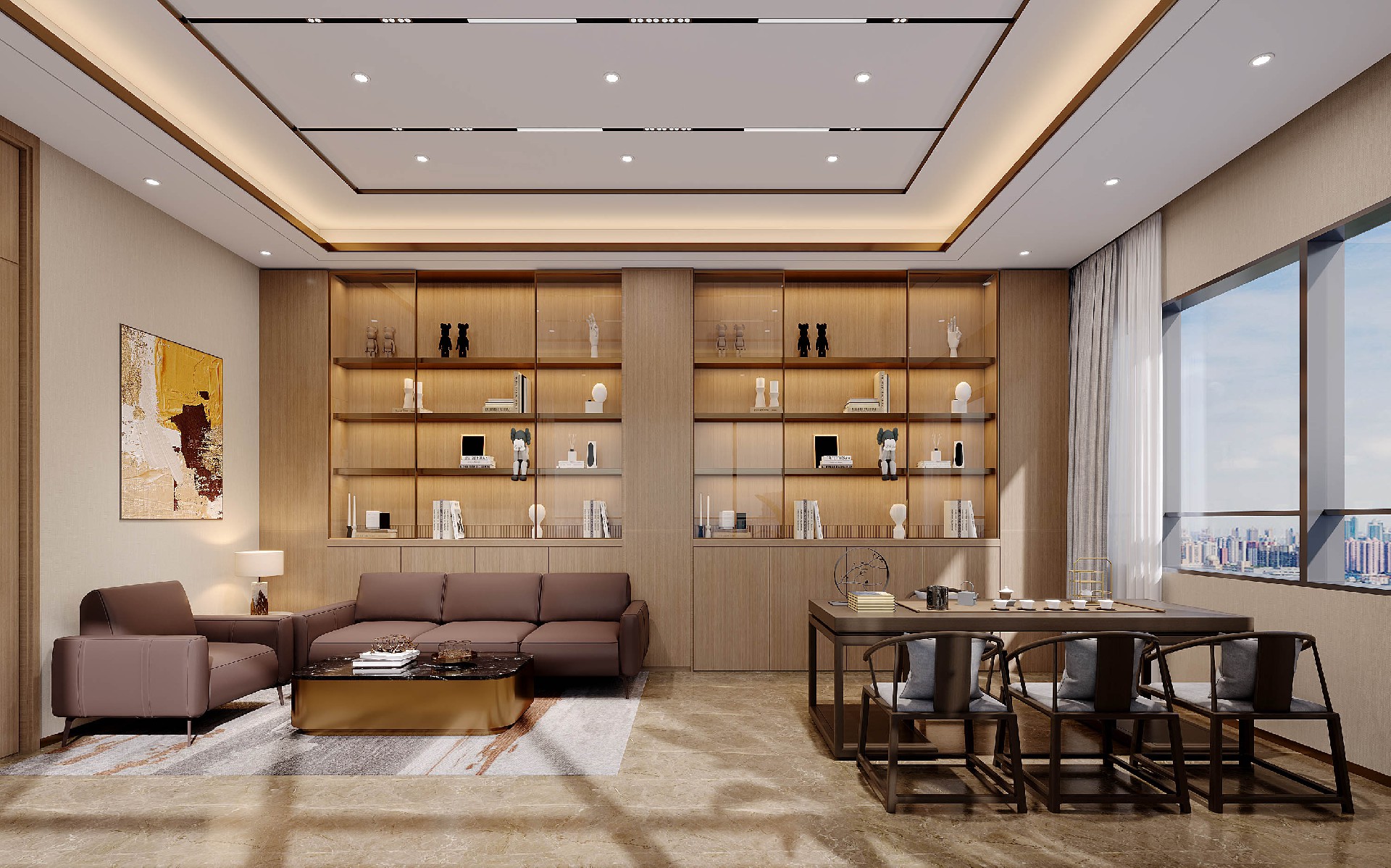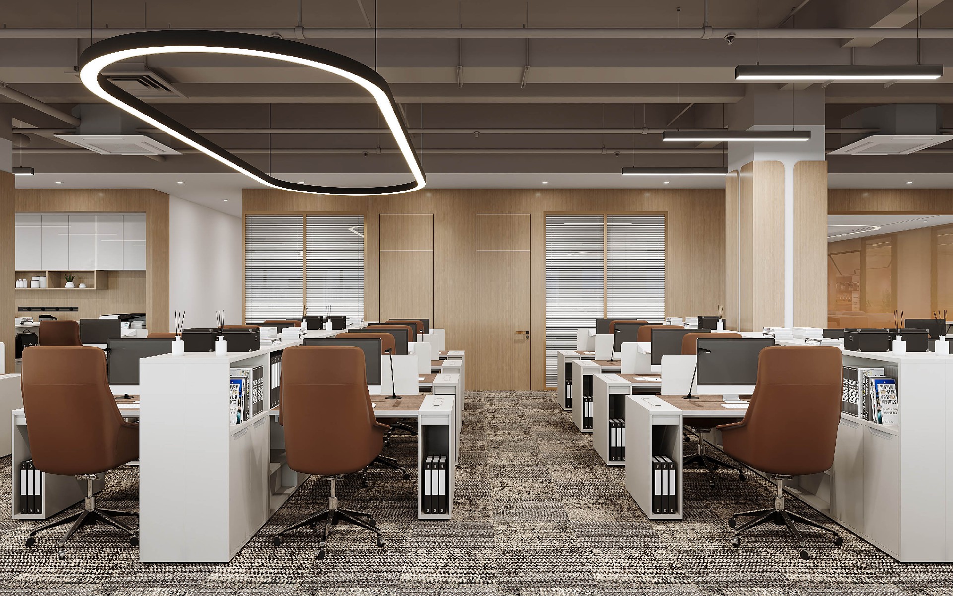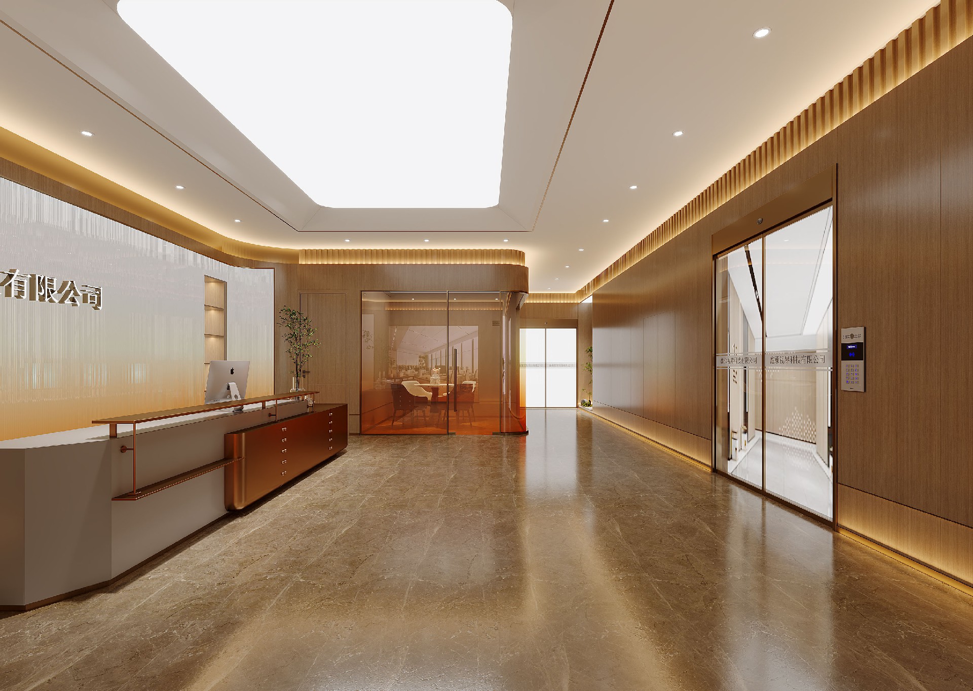 本项目采用现代轻奢风设计,以温润木色与金属质感,打造兼具商务气场与高效体验的办公场域。