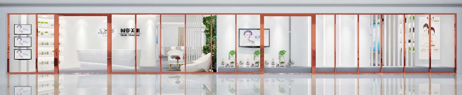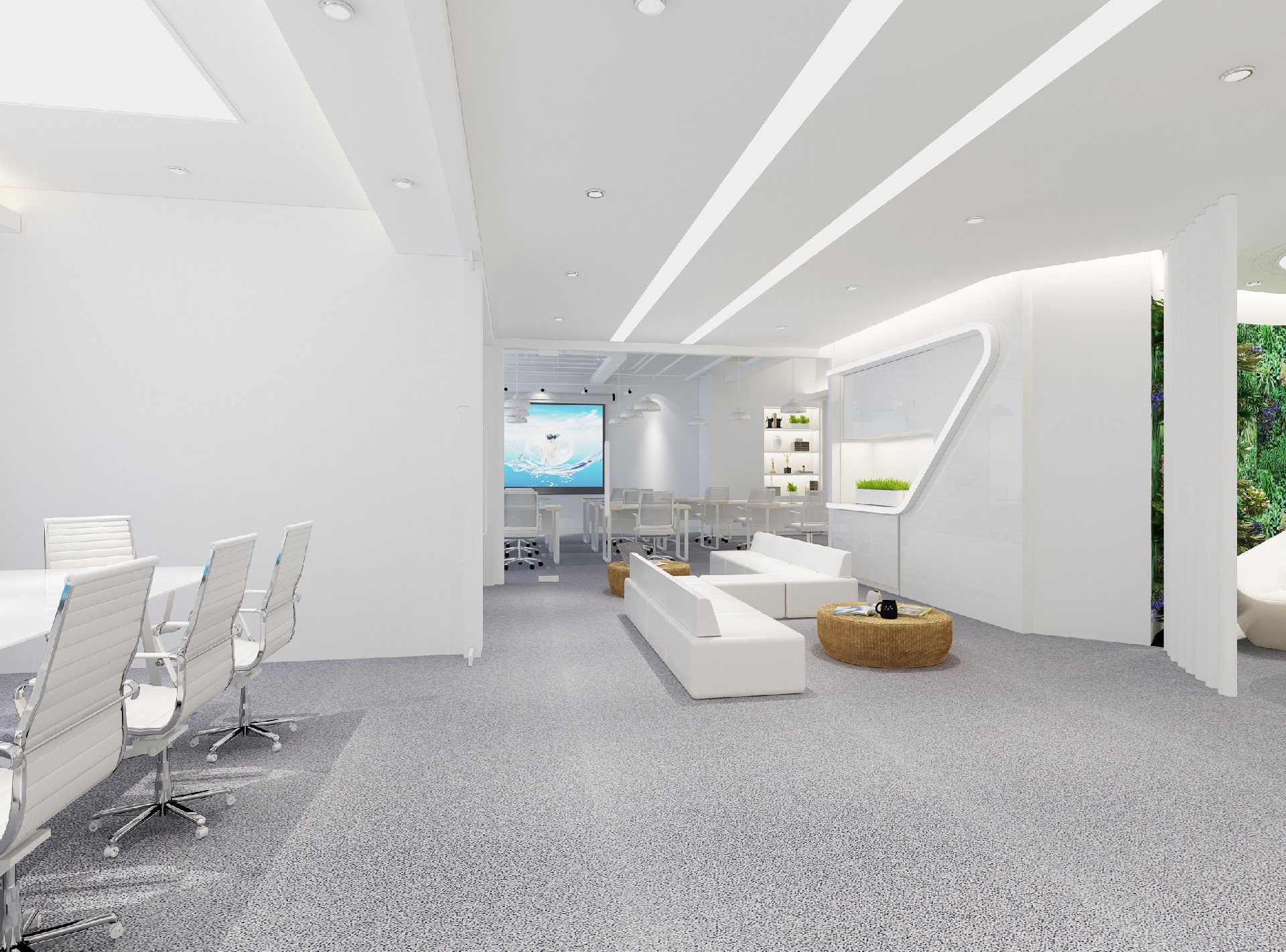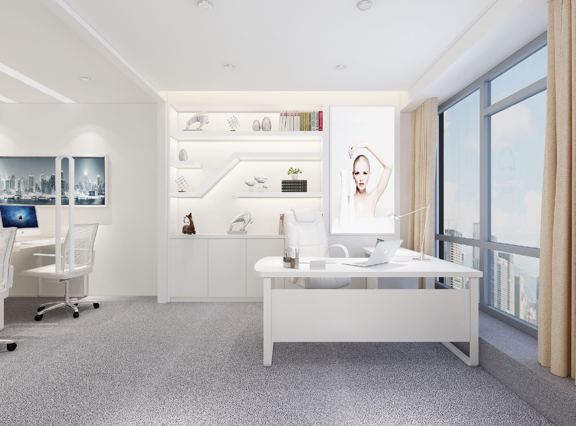 玫瑰金玻璃幕墙第一眼便凸显精致质感,室内以纯白为主调,搭配弧形前台与艺术绿植墙,营造干净通透的医美氛围;开放办公区与会议室延续极简设计语言,以利落线条与柔和灯光,打造高效舒适的工作场景。整体弱化繁杂装饰,将简约美学与医美空间的专业属性完美融合,为顾客打造安心舒适的变美体验场域。