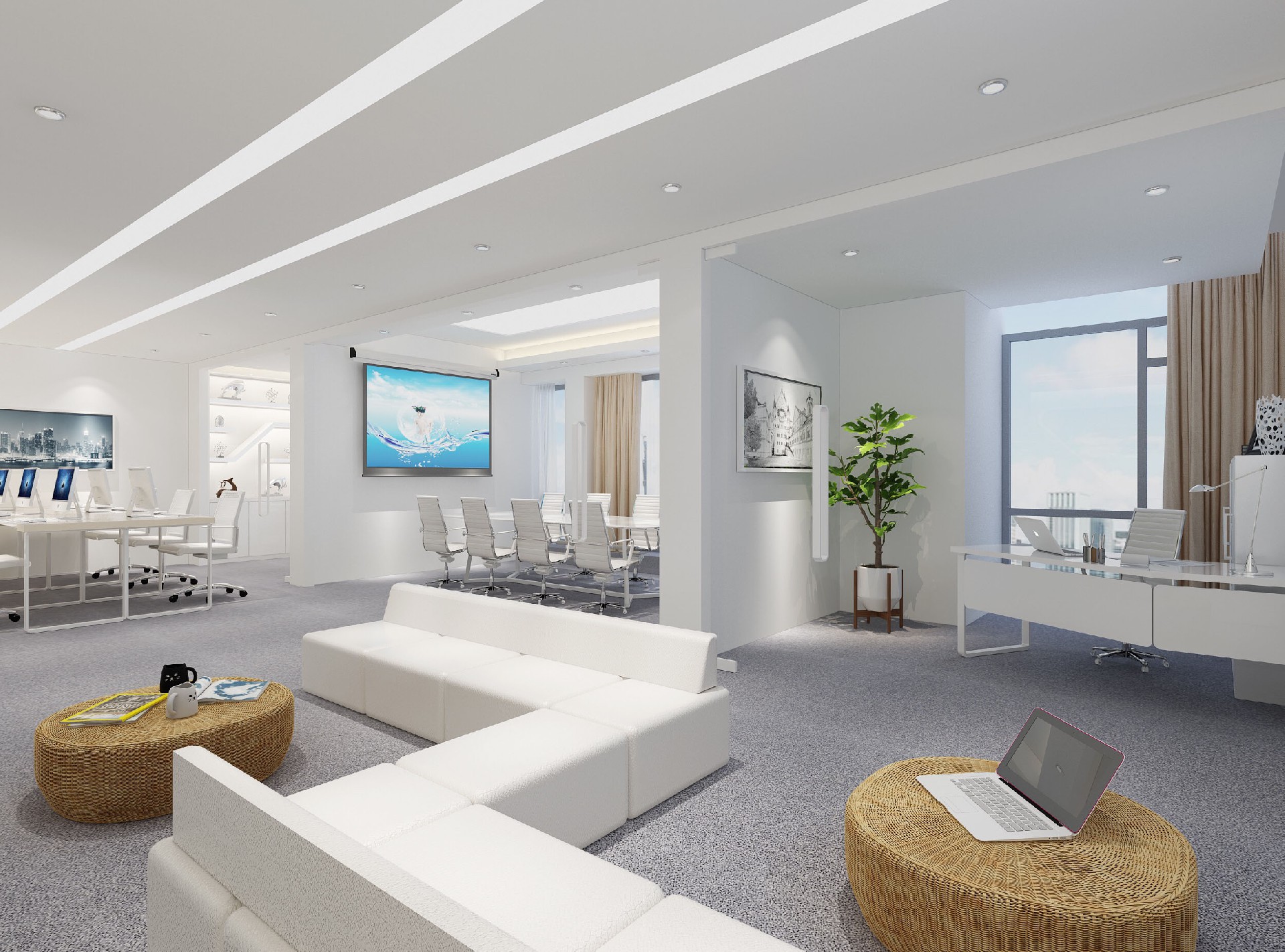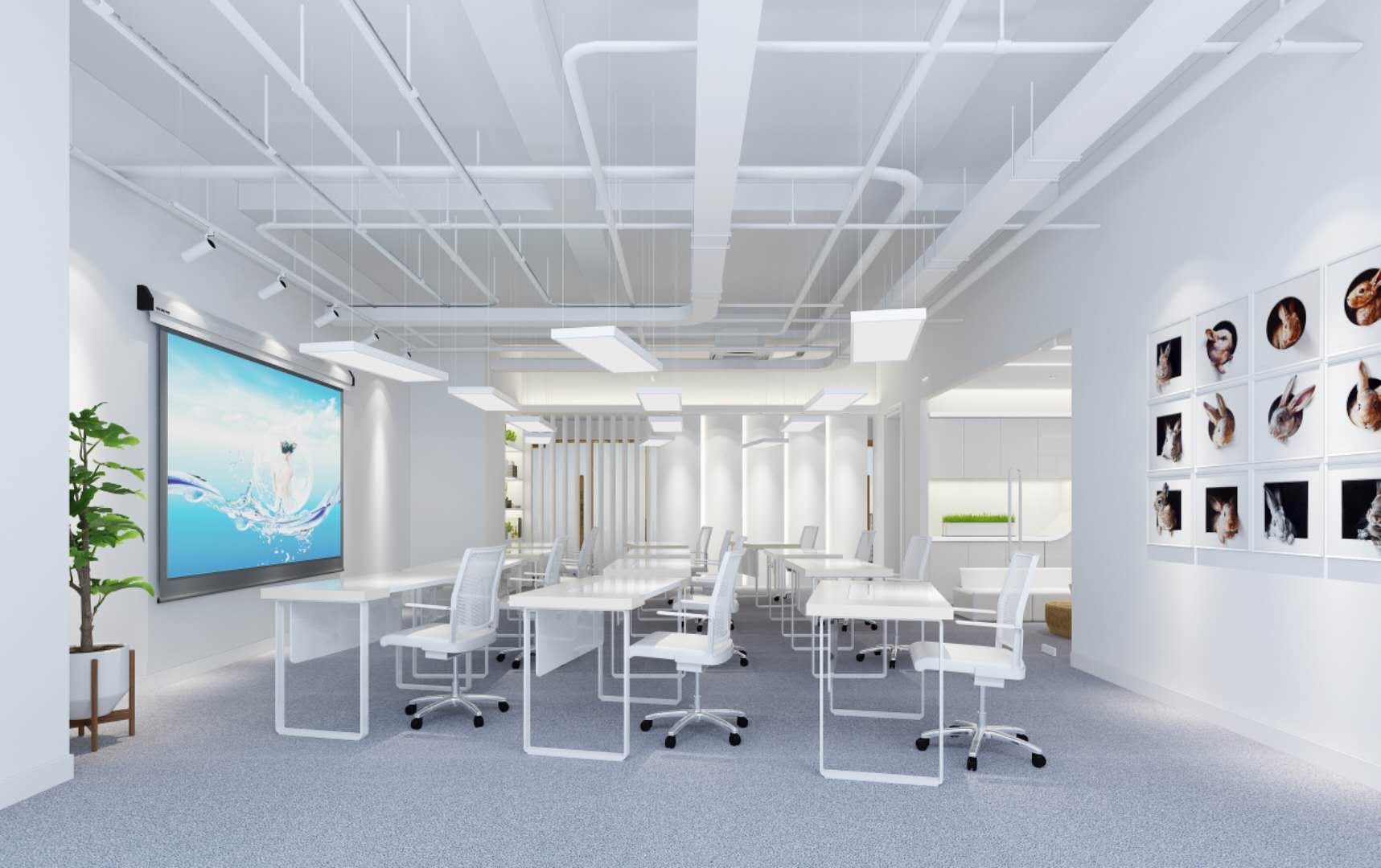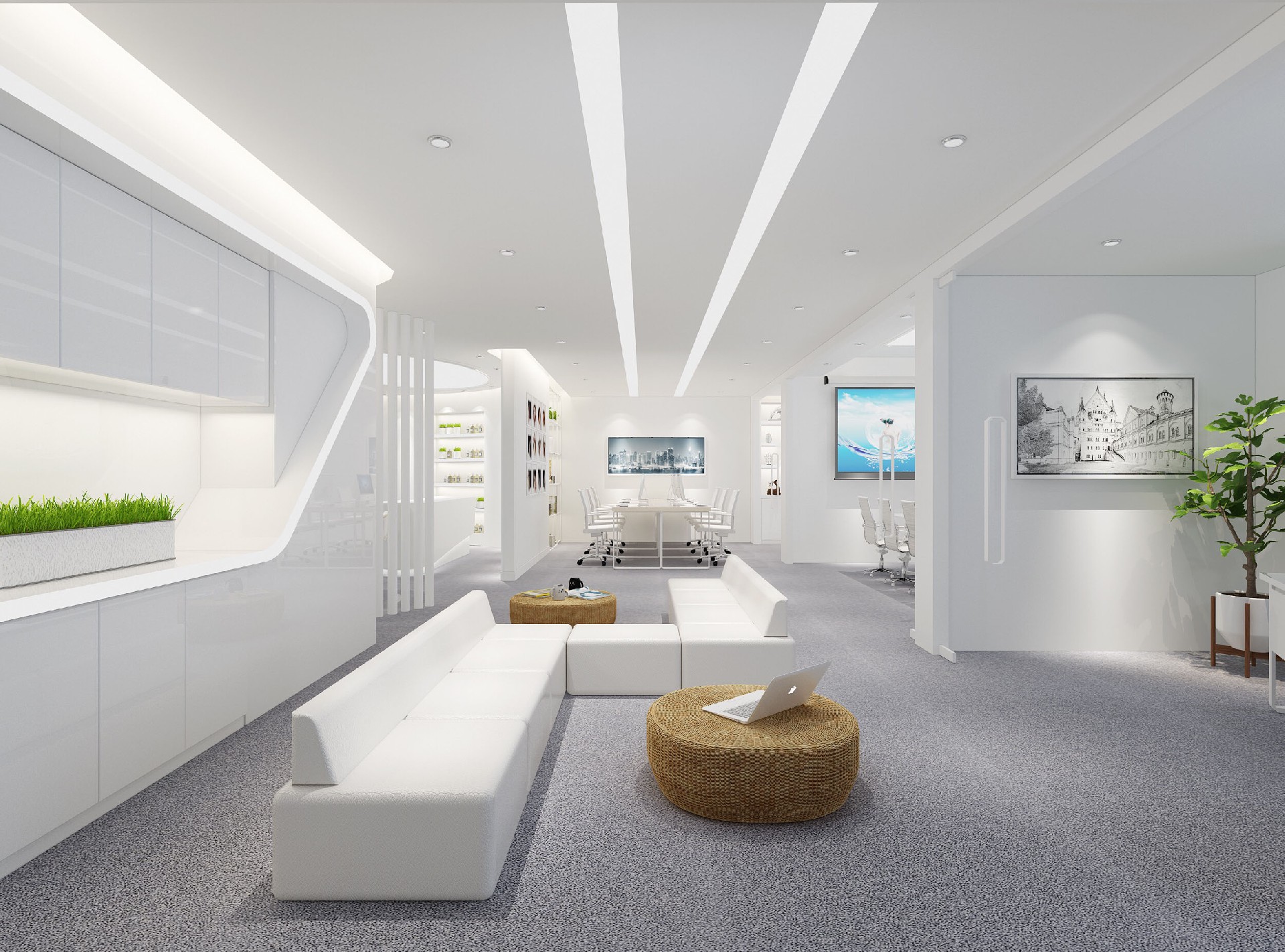 玫瑰金玻璃幕墙第一眼便凸显精致质感,室内以纯白为主调,搭配弧形前台与艺术绿植墙,营造干净通透的医美氛围;开放办公区与会议室延续极简设计语言,以利落线条与柔和灯光,打造高效舒适的工作场景。整体弱化繁杂装饰,将简约美学与医美空间的专业属性完美融合,为顾客打造安心舒适的变美体验场域。