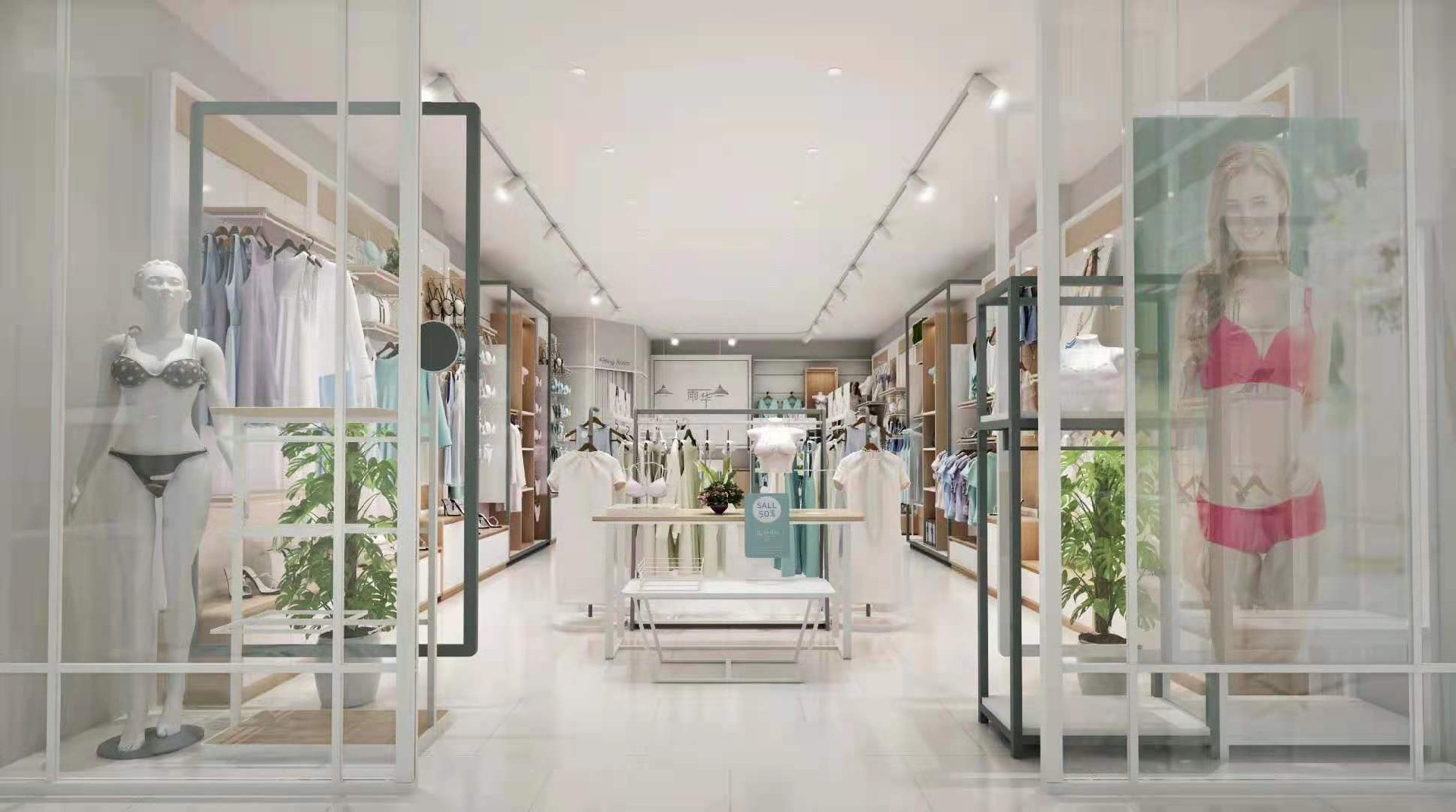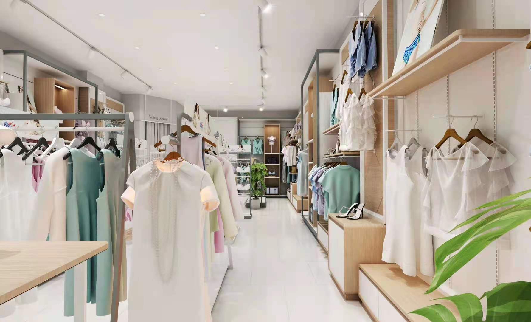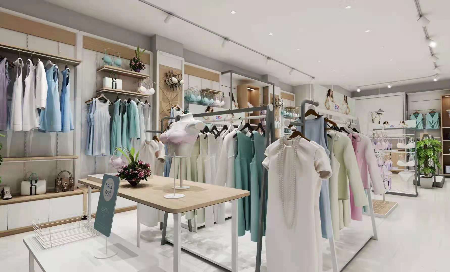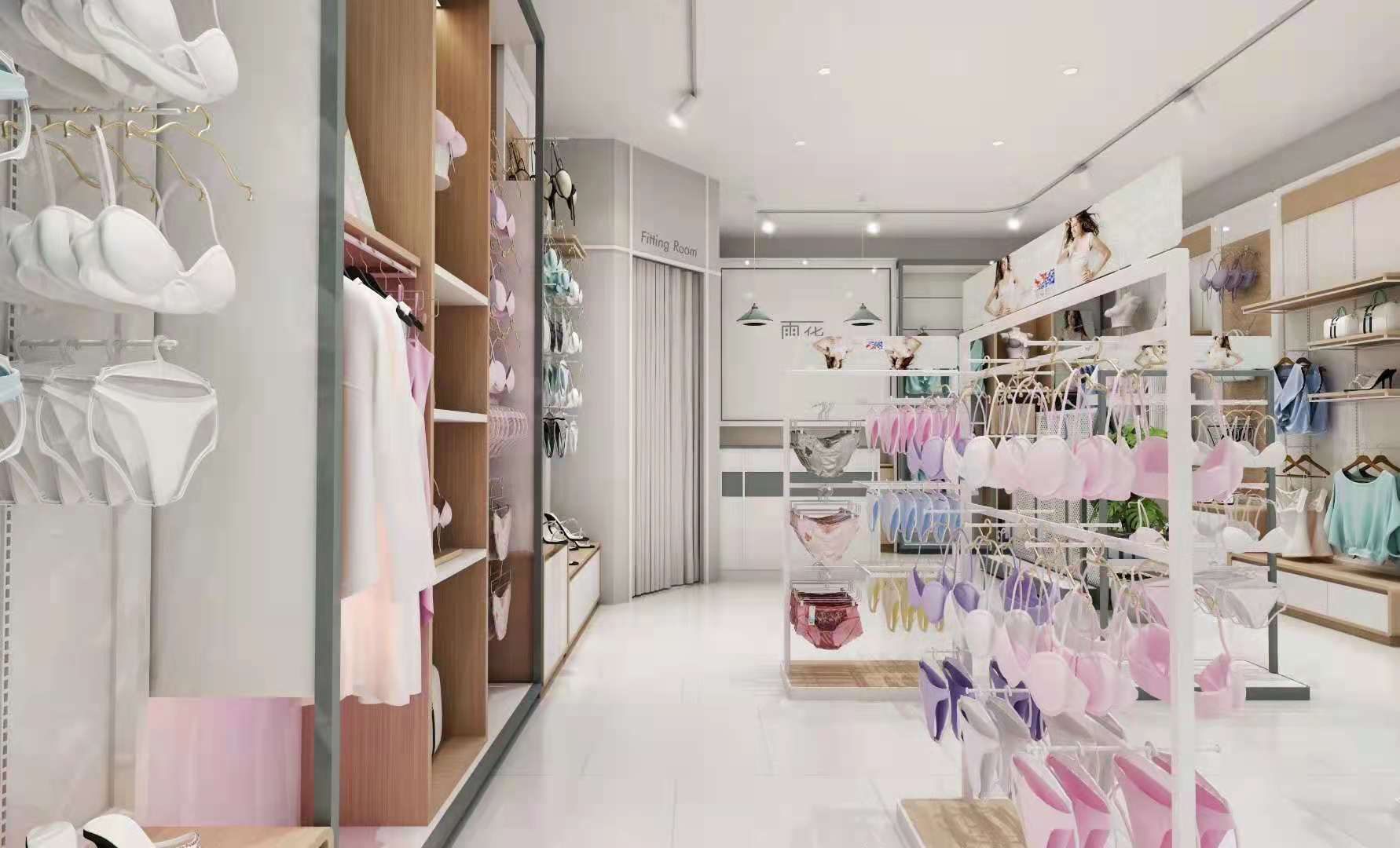 本项目为现代简约风内衣品牌店,以清新浅木色搭配低饱和莫兰迪色系,打造舒适、高级且充满亲和力的购物空间。