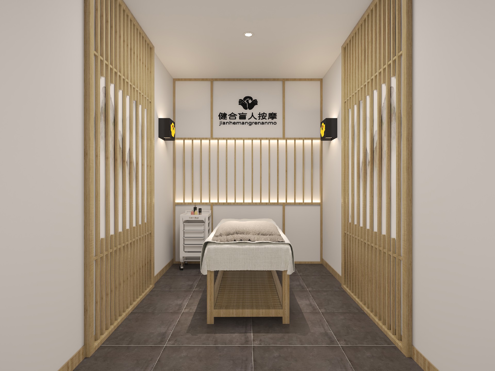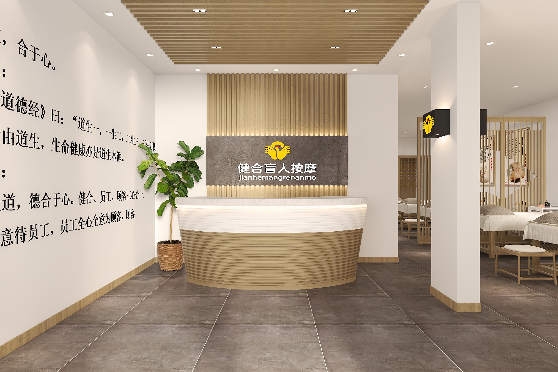 踏入这里,卸下疲惫,让身心回归自然的疗愈空间。本项目以新中式禅意风打造盲人按摩馆,以原木色与素白为主调,搭配温润的灯光与格栅隔断,营造静谧、安心的氛围。