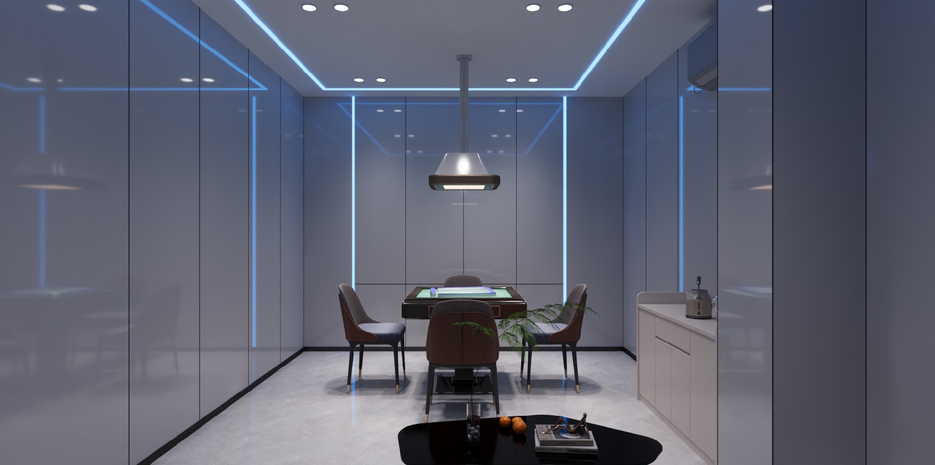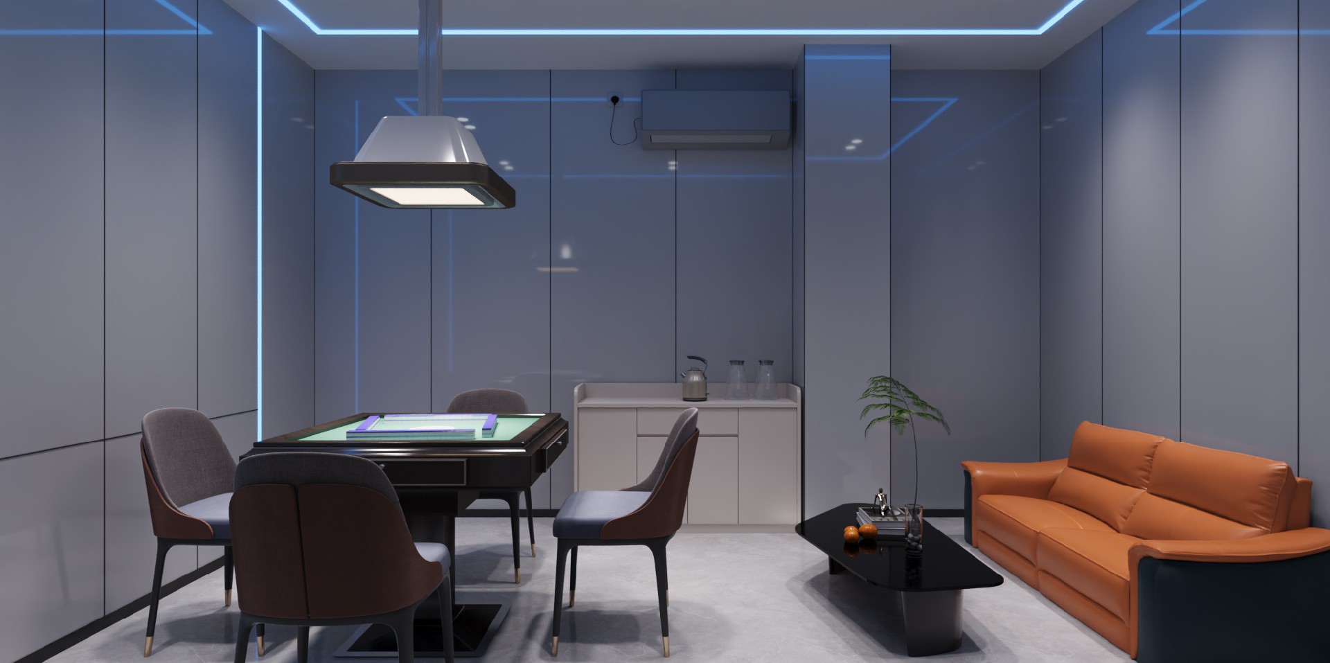 开放式大厅通过线性灯光与几何吊顶,营造出科技感十足的氛围;独立包间与麻将室则兼顾私密性与休闲感,满足多元娱乐需求;落地窗与城市夜景呼应,让每一场击球都充满氛围感。整体设计以潮流工业美学诠释娱乐空间的活力,为年轻人打造释放压力、享受社交的潮玩据点。